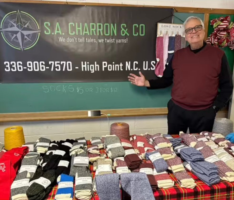 He did not want leftover yarn to go to waste, so he began buying showroom equipment and started using the leftover to create socks.